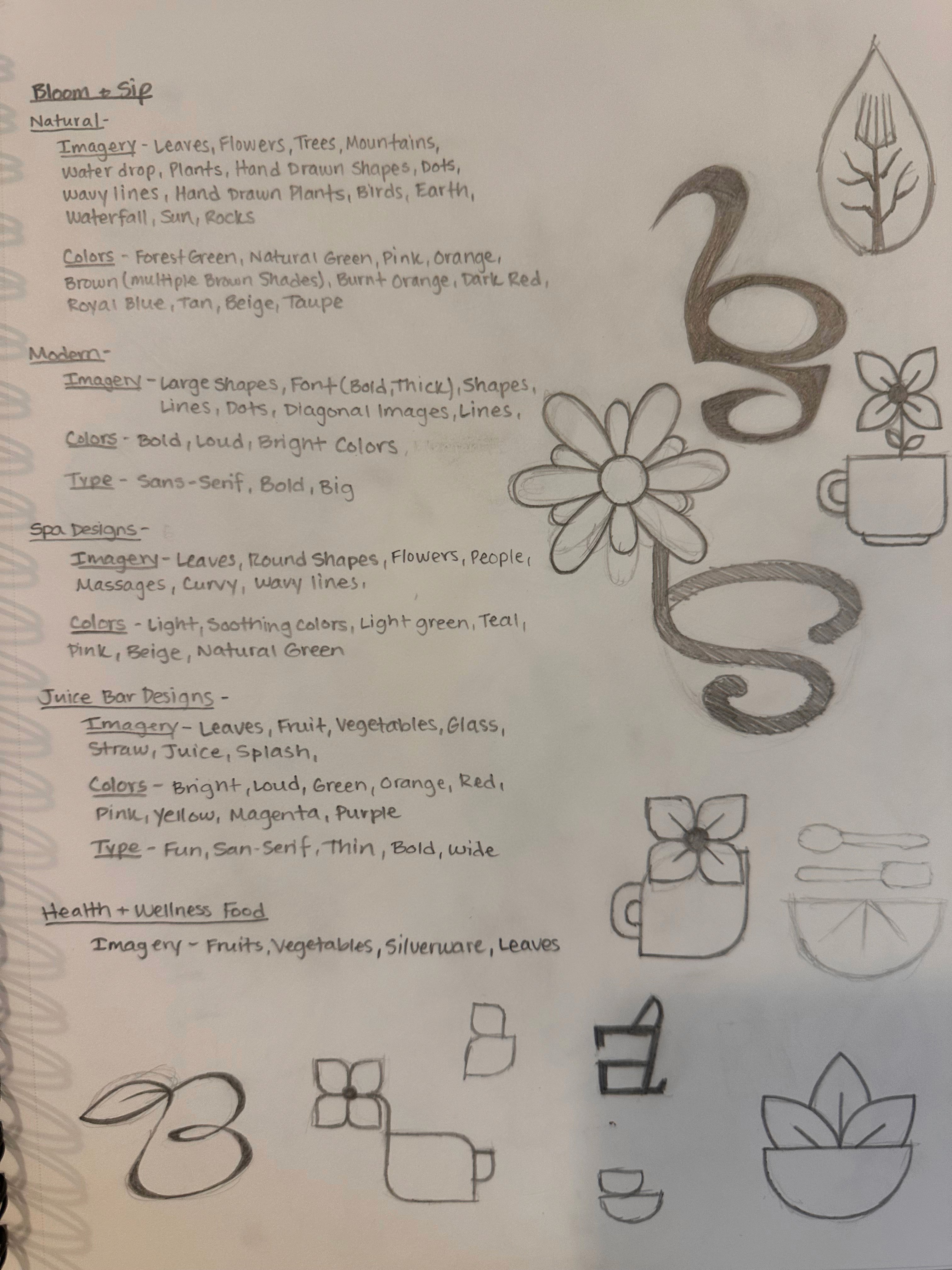 Create a visual identity for "Bloom & Sip." It’s known for its uplifting atmosphere, fresh ingredients, and botanical theme. The visual identity should feel natural, modern, and inviting — somewhere between a spa and a trendy juice bar.